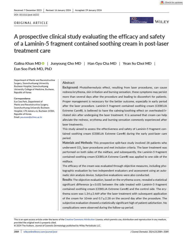 A prospective clinical study evaluating the efficacy and safety of a Laminin-5 fragment contained soothing cream in post-laser treatment care