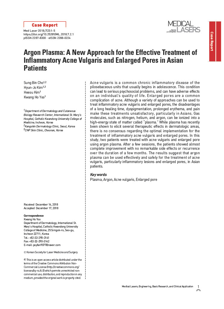 Argon Plasma A New Approach for the Effective Treatment of Inflammatory Acne Vulgaris and Enlarged Pores in Asian Patients