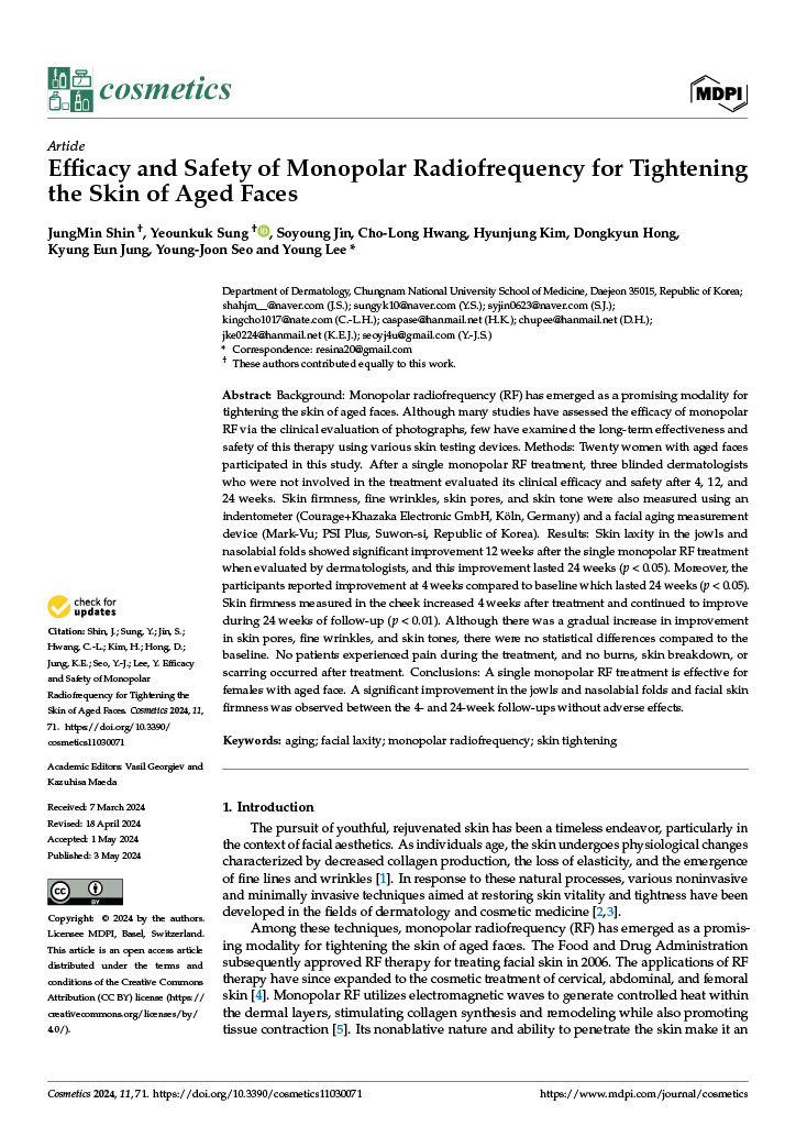 Efficacy and Safety of Monopolar Radiofrequency for Tightening the Skin of Aged Faces