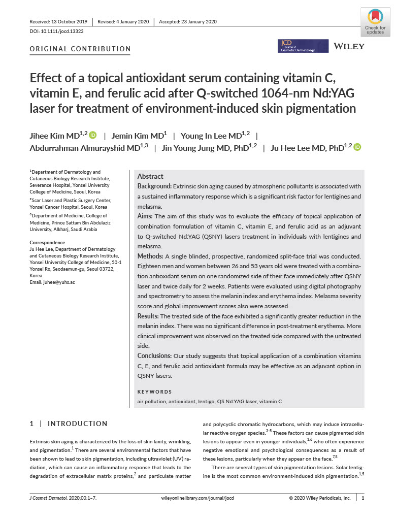 Effect of a topical antioxidant serum containing vitamin C, vitamin E, and ferulic acid after Q-switched 1064-nm Nd