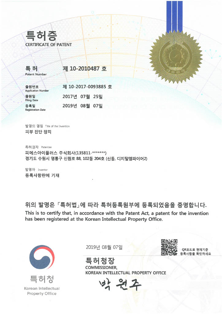 - 다음글특허증 (피부 진단 시스템 및 그 진단 방법) 25.08.20