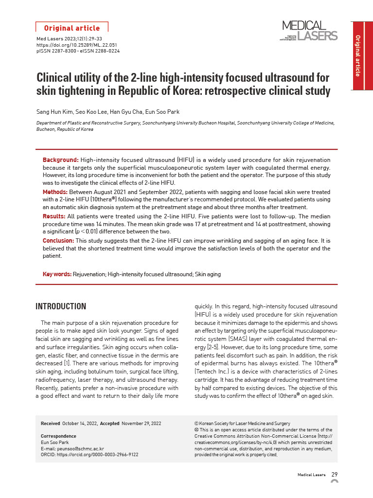 Clinical utility of the 2-line high-intensity focused ultrasound for skin tightening in Republic of Korea retrospective clinical study